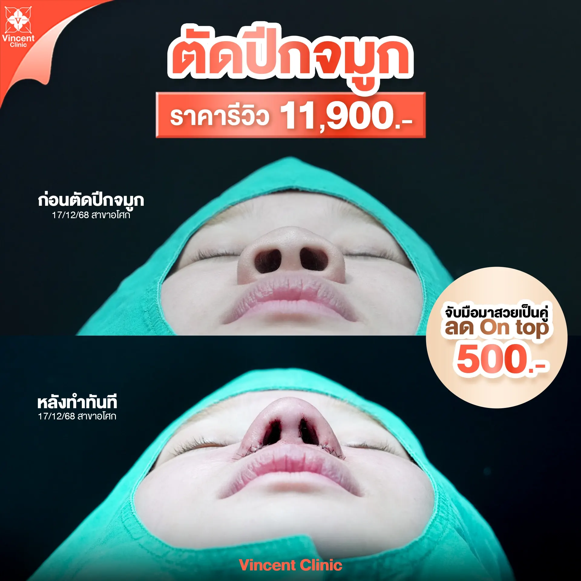 - ตัดปีกจมูก ราคาโปรโมชั่น เริ่มต้นที่ประมาณ 11,900 บาท
