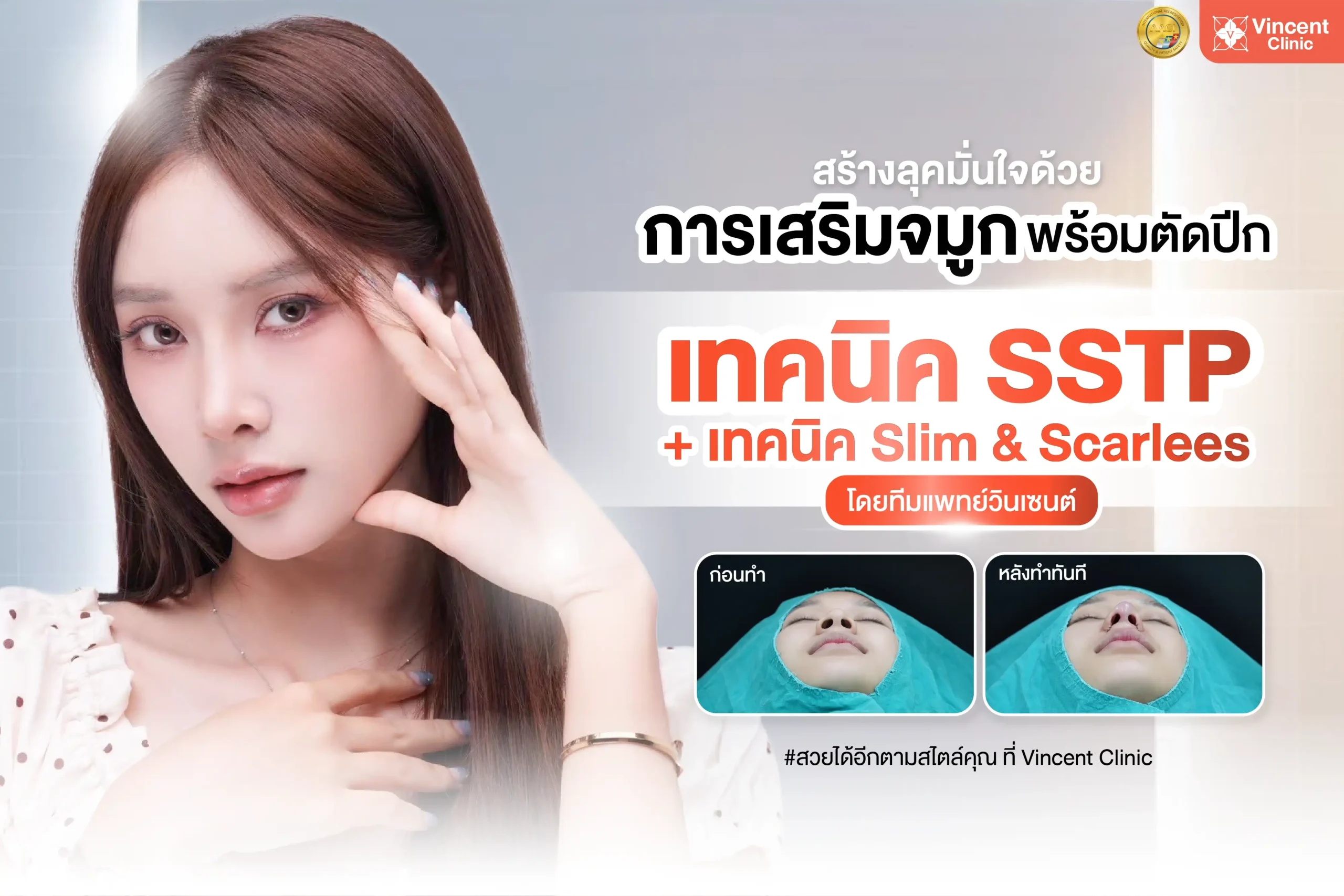 - เทคนิคซ่อนแผลเนียนกริบ SSTP เป็นการผ่าตัดแผลในโพรงจมูกทั้ง 2 ข้าง ทำให้ไม่เห็นแผลภายนอก ส่วนเทคนิค Slim & Scarless เน้นการเย็บซ่อนรอยแผลอย่างประณีตเพื่อลดโอกาสการเกิดคีลอยด์ ทำให้หมดกังวลเรื่องรอยแผลเป็นหลังทำ