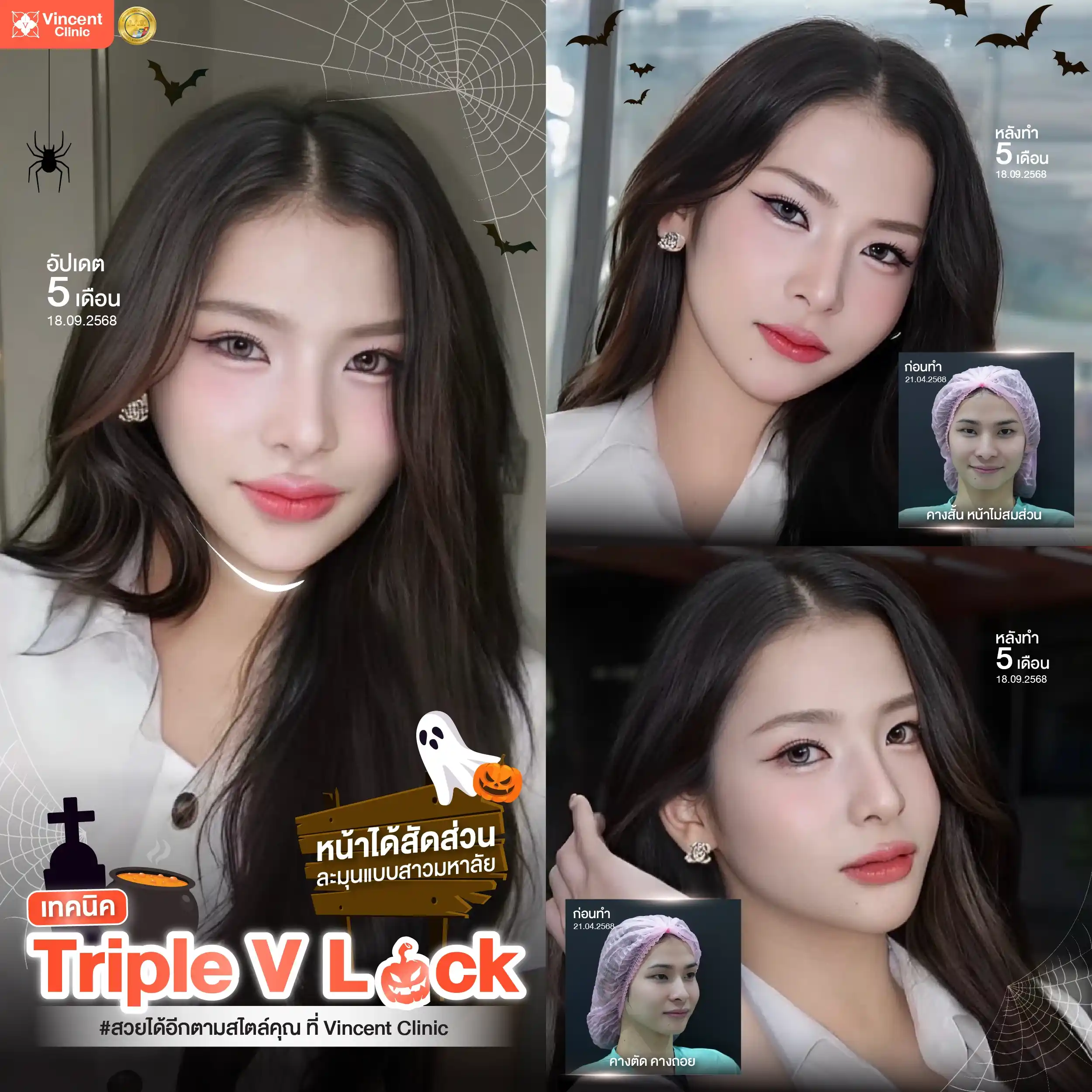 เทคนิค Triple V Lock คือ นวัตกรรมการศัลยกรรมคางเอกสิทธิ์เฉพาะของ Vincent Clinic ที่ถูกพัฒนาขึ้นเพื่อยกระดับความแม่นยำและความปลอดภัยให้เหนือกว่าการเสริมคางแบบปกติทั่วไป เทคนิคนี้คือการแก้ปัญหาที่คนไข้ส่วนใหญ่กังวลใจ เช่น ซิลิโคนลอย คางเบี้ยวเอียง หรือการเคลื่อนที่ของซิลิโคนในระยะยาว โดย Triple V Lock จะเน้นการล็อกตำแหน่งซิลิโคนให้ยึดแน่นคงที่ตามโครงสร้างสรีระที่แพทย์กำหนดไว้ ส่งผลให้กรอบหน้าดูชัดเจน มีมิติ และรับกับรูปหน้าอย่างสมบูรณ์แบบ