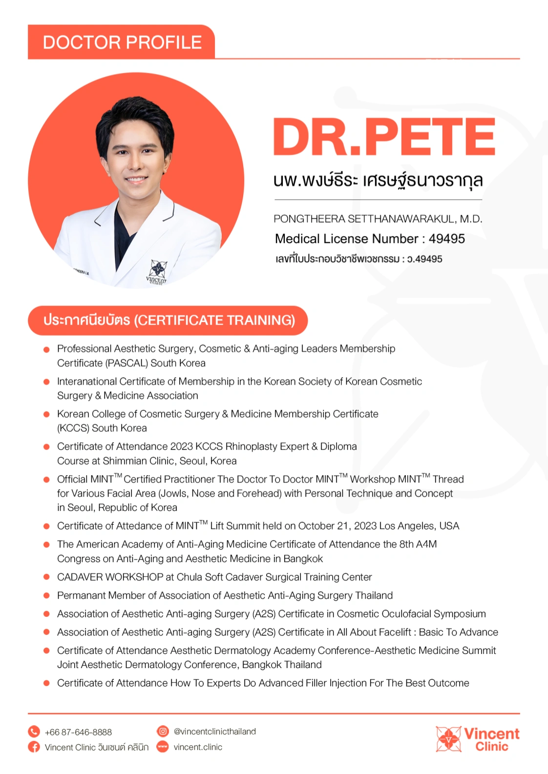 - Permanent Member of Association of Aesthetic Anti-Aging Surgery Thailand