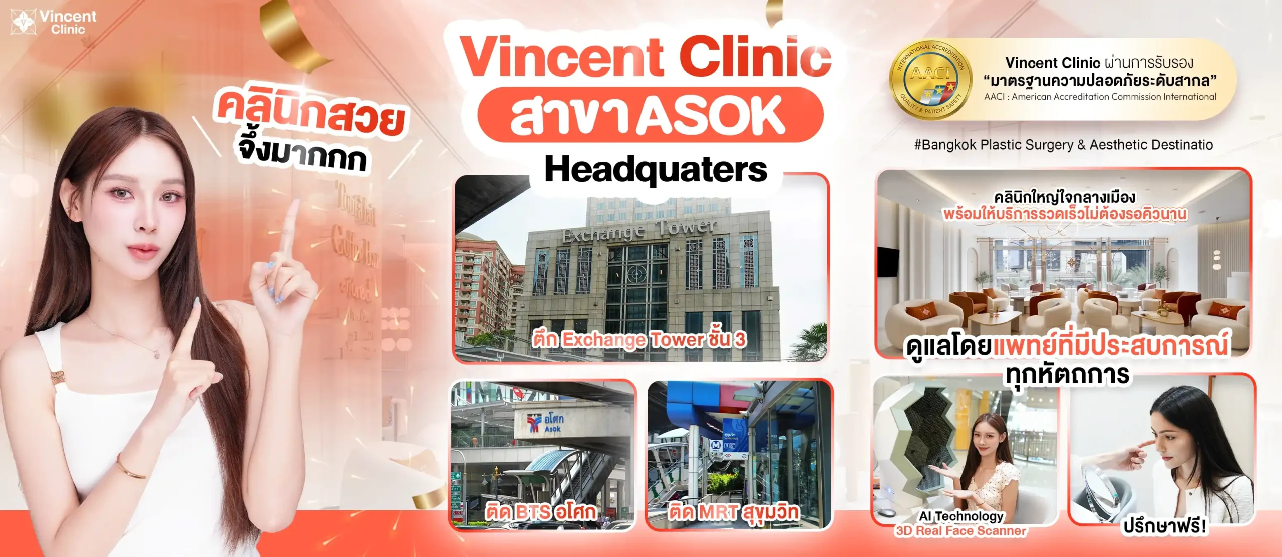 วินเซนต์คลินิก สาขาอโศก ศูนย์ศัลยกรรมใบหน้าและรูปร่าง ใจกลางอโศก-สุขุมวิท